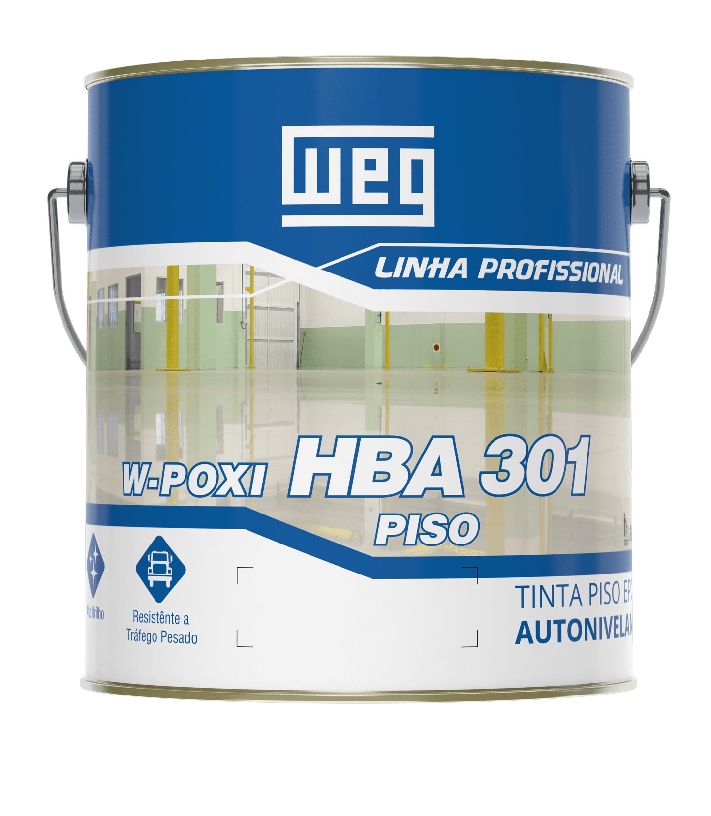 WEG HBA 301 (linha W-POXI HBA 301) é um revestimento/tinta epóxi autonivelante bicomponente, curado com poliamina (conforme descrição de catálogo), sem solventes e de baixo VOC, indicado principalmente para compor sistemas de pintura de pisos com alto brilho e aplicação em altos espesores em uma única demão. No Boletim Técnico do produto, ele é descrito como pintura epóxi autonivelante curada com poliamida, sem solventes e com baixo teor de VOC, recomendada para ambientes internos, compondo esquemas para pisos com excelente resistência à abrasão, resistência mecânica e resistência química. O documento também registra que itens em conformidade com a Diretiva RoHS possuem a descrição “R” na nomenclatura do produto.